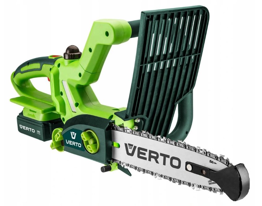 Акумуляторна бензопила VERTO 52G585 21 В з напрямною шиною 31 см придатна у великій кількості домашніх робіт і в саду.